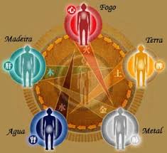 fogo, terra, metal, água e madeira que são representados pelos órgãos e víceras do nosso corpo, ou seja: